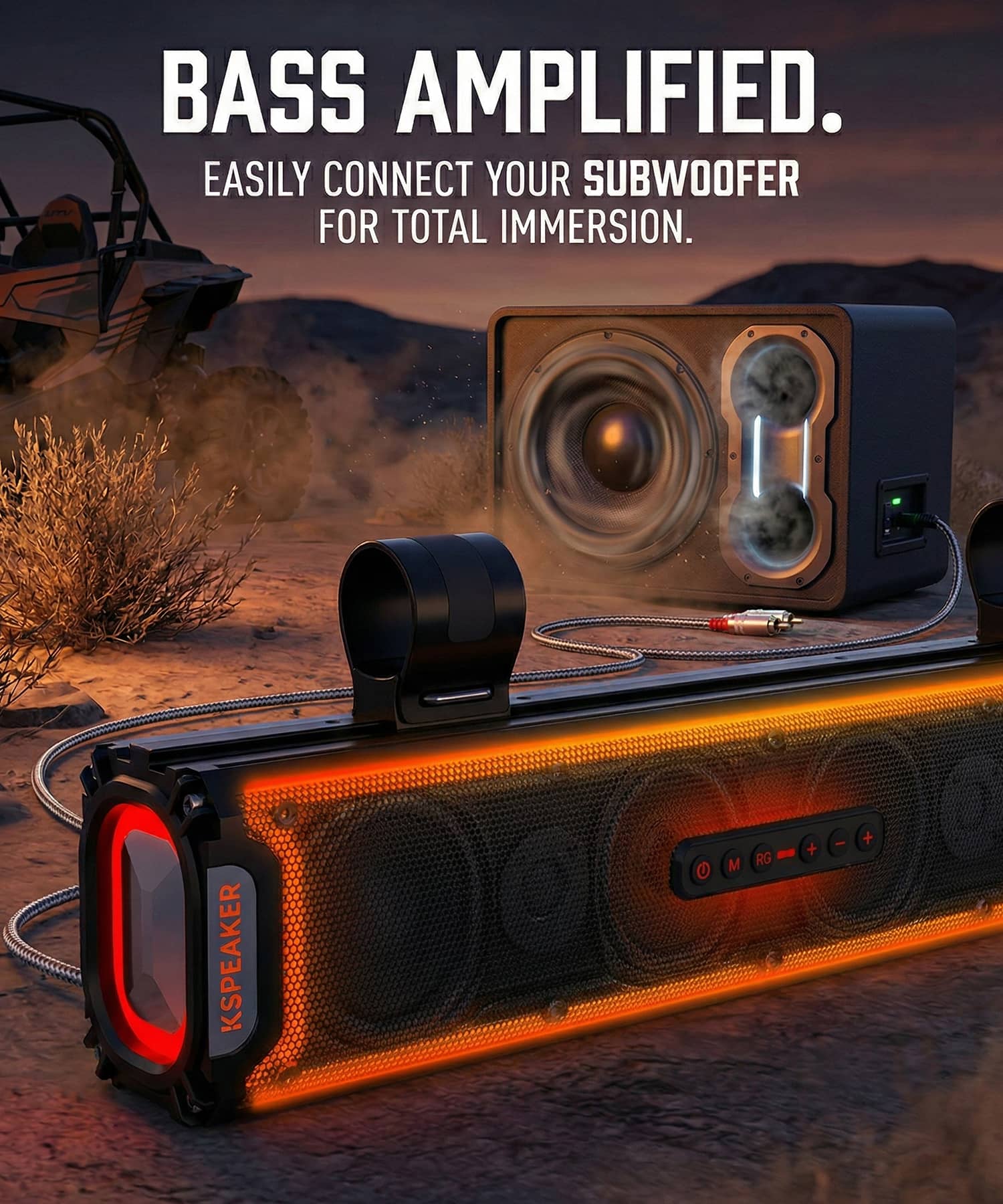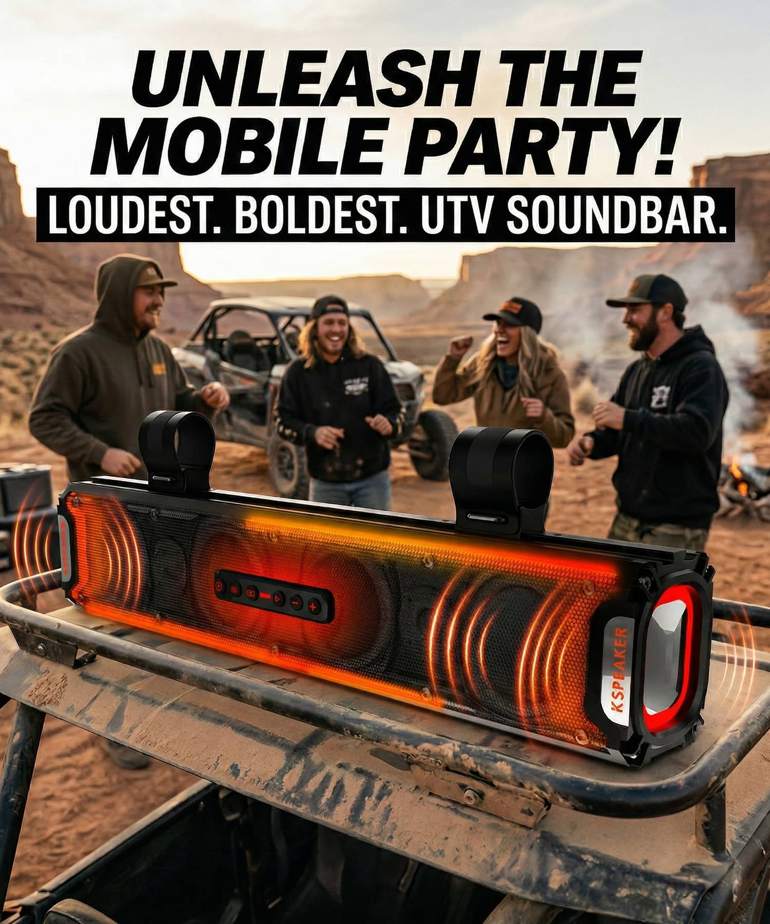 Fuel your adrenaline with the ultimate off-road soundtrack. Rugged, powerful, and built to handle the mud—turn every trail into a party.