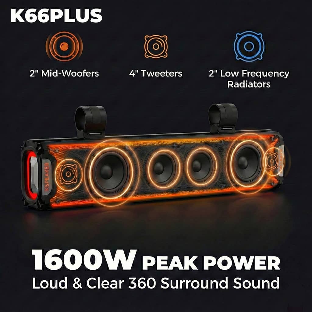 KSPEAKER audio systems shine with tough build, smart design, and premium quality—plus, JBL-collab sound elevates every off-road ride with rich tones!